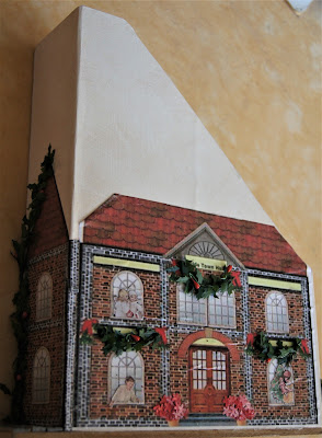 Je savais depuis longtemps qu'avant de commencer le travail de modelage, il fallait recouvrir les structures de papier alu froissé et lissé. Au travail!Entretemps, j'avais fixé la cheminée en carton plume 5mm